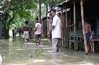 バングラデシュでは、雨がたくさん降る季節(雨期)とほとんど雨が降らない季節(乾期)があります。大雨が降ると洪水で国の半分ちかくが水びたしになることもあります。サイクロンや洪水などの自然災害が多く、生活は決して楽ではありません。