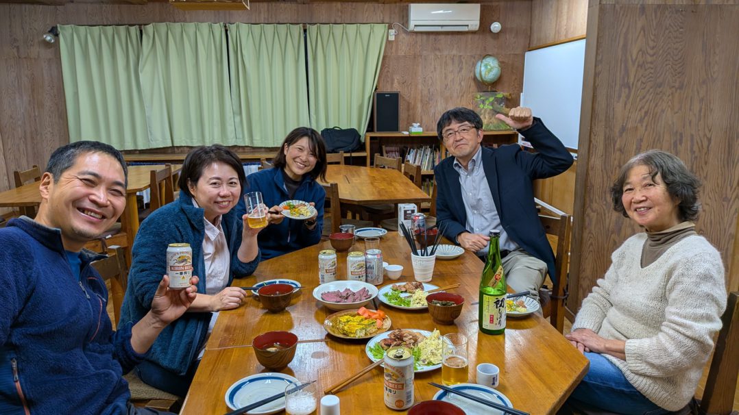 終了後はホールアース自然学校の富士山本校に宿泊させていただきました。講演した職員の内山は以前ホールアースでの研修に参加していたことがあり、久々の訪問。職員の皆さんの手料理や地元の商店のお惣菜で歓迎会も開いていただきました!ありがとうございました。