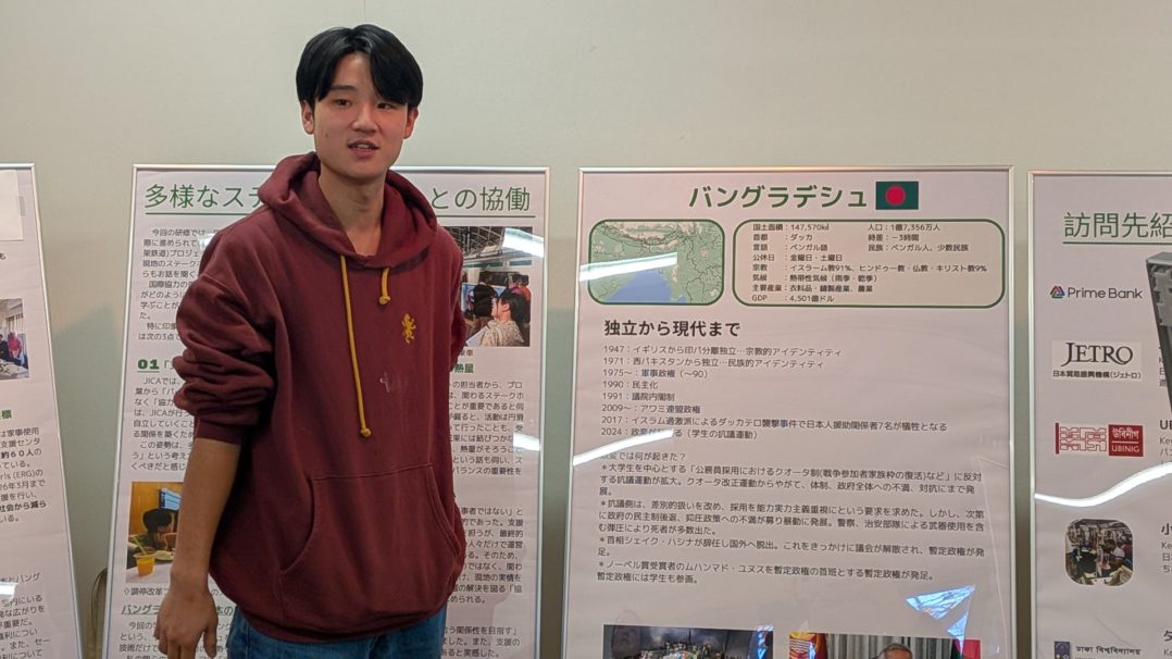・「自分はまちづくりに興味があるが、国際協力はどのような地域を作っていくのか、まちづくりと共通するところがたくさんある。バングラデシュは今大きな変化の途中で、発展しているところもあればその弊害もある。日本のこれまでのまちづくりや、自分の暮らす環境を見直すきっかけになった」
