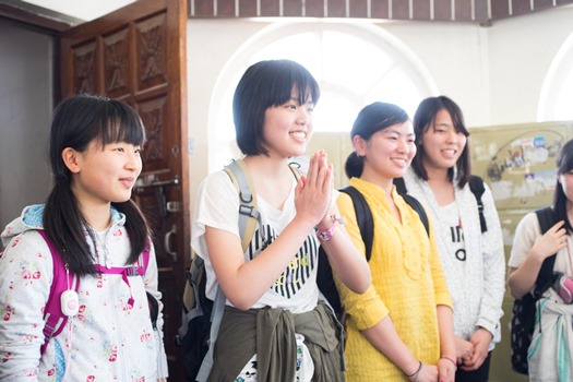 写真左から2番目。「ナマステ」と手を合わせて挨拶をします。