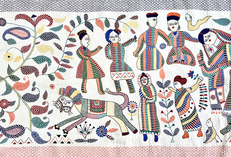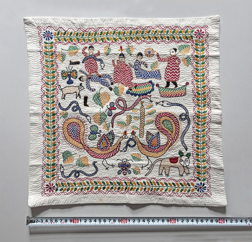 会場には、4メートルにもなる見ごたえたっぷりの超大型作品をはじめ、バングラデシュの折々のイベントを表現した作品12枚を一同に展示するほか、岩立フォークテキスタイルミュージアム所蔵の貴重な作品をお借りして展示します。
