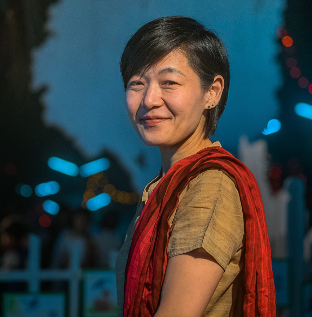 五十嵐理奈さん :一橋大学大学院社会学研究科後期博士課程修了。博士(社会学)。専門はバングラデシュの視覚文化、アジアの近現代美術。ベンガル地方やミャンマーを中心にアジア美術の生まれる現場を文化人類学な視点で研究。1990年代末に在日バングラデシュ人コミュニティのフィールドワークをし、池袋で「バングラデシュ・フェア」を一緒に立ち上げる。1999-2000年に刺繍布製品ノクシ・カンタの文化人類学的調査のため、インド国境に近いバングラデシュの村に滞在。2001年「ベンガルの刺繍カンタ」展(福岡アジア美術館)に携わる。2003年より現職。企画した展覧会に「ニルーファル・チャマン」展(2007年)、「魅せられて、インド。」(2012年)、「ガンゴー・ヴィレッジと 1980年代・ミャンマーの実験美術」(2012年)、「ヒンドゥーの神々の物語」(2021)など。