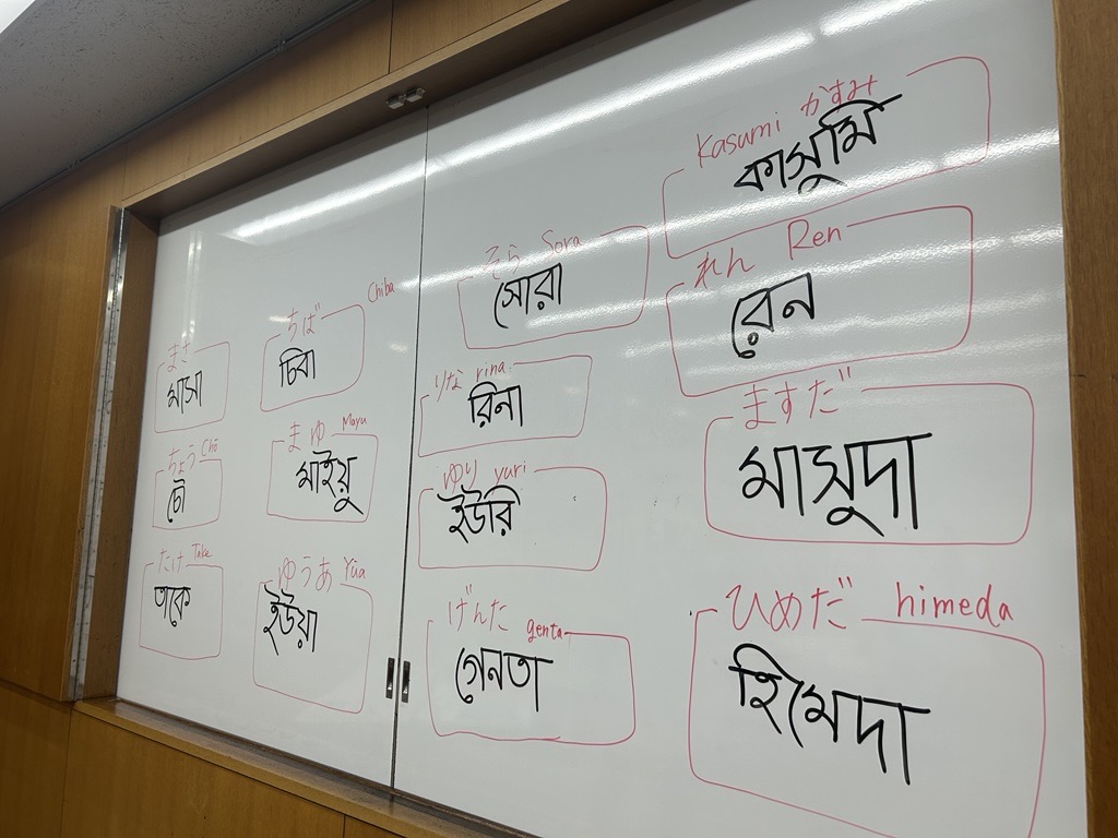さらに参加者一人ひとりの名前をベンガル文字で書いてもらう体験も。